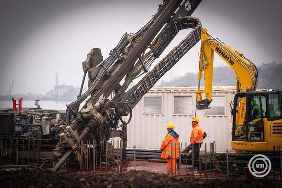 - Több száz méteres partfalszakaszt töltenek fel, hódítanak el a tengertől, ezt a partfalszakaszt erősítik meg hatalmas cölöpökkel, amiket levernek majd a tengerfenékre. Ez tartja a partfalat, amit 35 méteres horgonyokkal kell oldalról megtartani, hogy a partfalszakasz elbírja majd a hatalmas terhelést, amit a magyar exportáruk berakodása jelent. Négyzetméterenként, hattonnás súlyt kell elbírni a hosszú partfalszakasznak. Ezek a munkák zajlanak most, és befejeződnek be a jövő év augusztus-szeptembere körül.