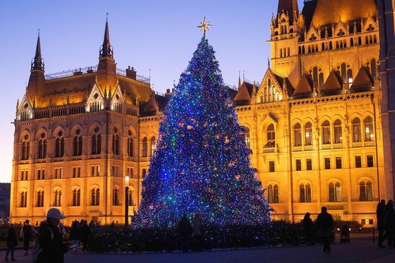 Kép1: Ilyen volt az ország karácsonyfája tavaly, az Országház előtt. Kép: parlament.hu