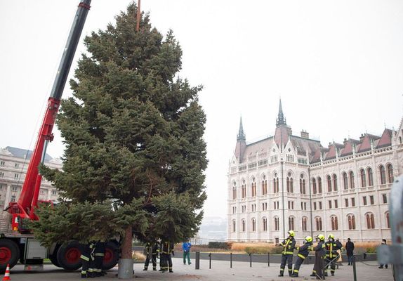 Kép2: Karácsonyfa-állítás korábbi évben, a Kossuth téren. Kép: orszagkaracsonyfaja.hu