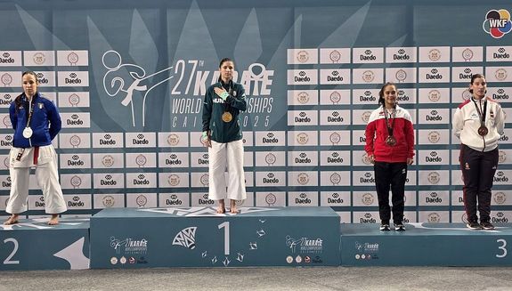 Kép1: Kákosy Olívia szombaton, megvédte világbajnoki címét az Egyiptomban, Kairóban megrendezett karate világbajnokságon, a para-karatésok között. Kép forrása: Szerző