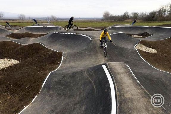 Kép1: Átadták Magyarország leghosszabb, 360 folyóméter hosszúságú kerékpáros pumpapályáját szombaton, a Pest vármegyei Zsámbékon. Kép: MTI / Kocsis Zoltán