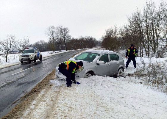 Kép2: A Békés Vármegyei Rendőr-főkapitányság Mélységi Ellenőrzési Osztályának rendőrei szerdán, tegnap, délelőtt, fél 10 körül Orosházáról Szarvas felé tartottak, amikor látták, hogy egy személygépkocsi lecsúszott az útról és elakadt. Megálltak, lapátoltak, segítettek, hogy az autós, aki nem sérült meg, tovább indulhasson. Forrás és kép: Békés vármegyei rendőrség Facebook-oldala