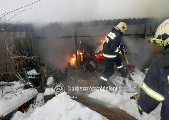 Kép2: Kigyulladt a melléképület tegnap, reggel, Gyomaendrődön, mintegy 200 bála szalmával. Kép forrása: Békés Vármegyei Katasztrófavédelmi Igazgatóság