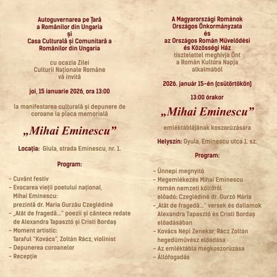 Gyulán, holnap, koszorúzással és ünnepi műsorral emlékeznek a költőre, akinek születésnapja a román kultúra napja