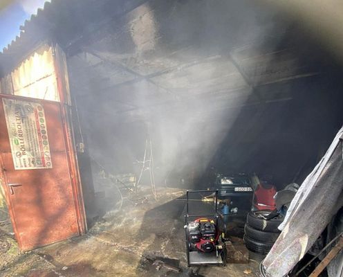 Kép1-2: Tűz keletkezett egy autószerelő műhelyben, tegnap, délután, Telekgerendáson. Képek forrása: Békés Vármegyei Katasztrófavédelmi Igazgatóság