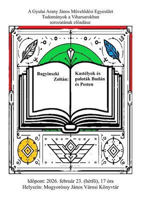 Kép2: A Kastélyok és paloták Budán és Pesten című előadás meghívó-plakátja. Kép forrása: Mogyoróssy János Városi Könyvtár