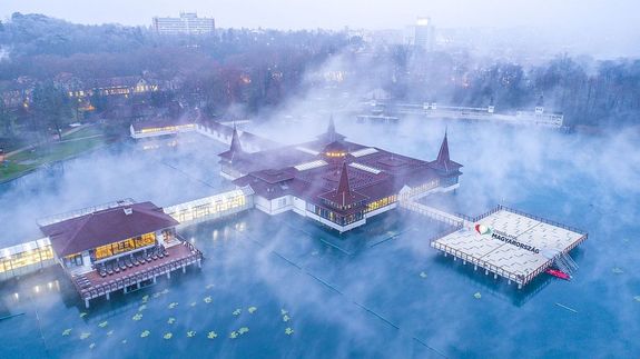 Kép2: Párapaplan alatt a Hévízi-tó. Drónfotó. Kép: csodalatosmagyarorszag.hu