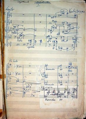 Kép2: Kurtág György közelmúltban felfedezett Fúvósötösének kézirata. Kép forrása: Kodály Intézet