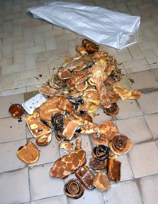 Kép2-3: A munkába érkező dolgozókat ez a látvány fogadta a pékségben. Kép forrása: Békés vármegyei rendőrség Facebook-oldala
