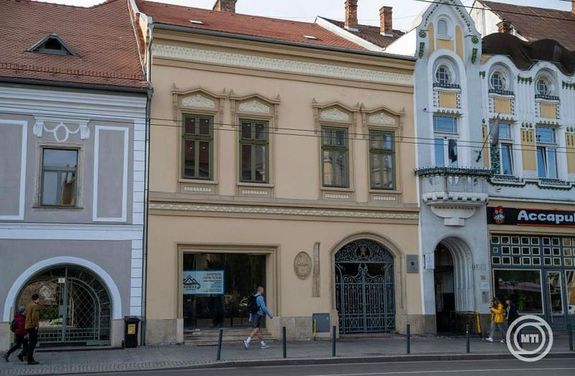 A Rósás-házon, a táblát Gergely Balázs leplezte le, majd László Attila kolozs-dobokai főesperes mondott rá áldást. (Forrás: MTI)