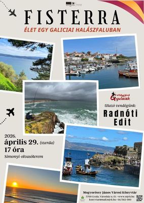 Kép2: A Fisterra – Élet egy galíciai halászfaluban című előadás meghívó-plakátja. Kép forrása: Mogyoróssy János Városi Könyvtár