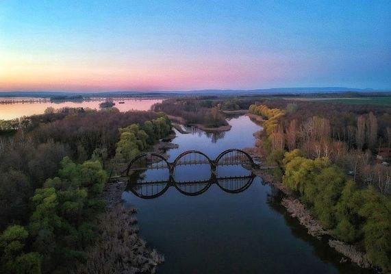 Kép3: A Kányavári-híd alkonyatban, a Kis-Balatonon. Kép: Inritter. Kép forrása: Wikipédia