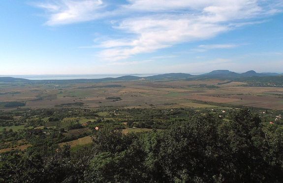 Kép4: A Káli-medence a Szentbékkálla melletti Eötvös Károly kilátóról. Kép: Hollófernyiges. Kép forrása: Wikipédia