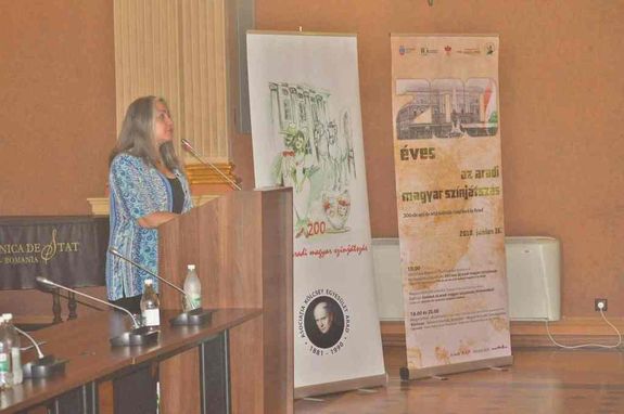 Dr. Sirató Ildikó, az Országos Széchenyi Könyvtár Színháztörténeti Tárának vezetője, színháztörténész szép és okos, ugyanakkor közérthető gondolatokkal örvendeztette meg a jelenlévőket. Többek között rámutatott: ha Aradon a magyarok nem akartak volna, nem akarnának ma is színházat, akkor az nem lenne. Kétszáz éve azért született meg itt a színház, mert voltak színjátszók, közönség és alkalmas épület – tette hozzá. Aradot különleges városnak mondta, amolyan „Európa-klubnak”, mely saját szellemiségéből táplálkozik, húzzák a határokat ide vagy oda.